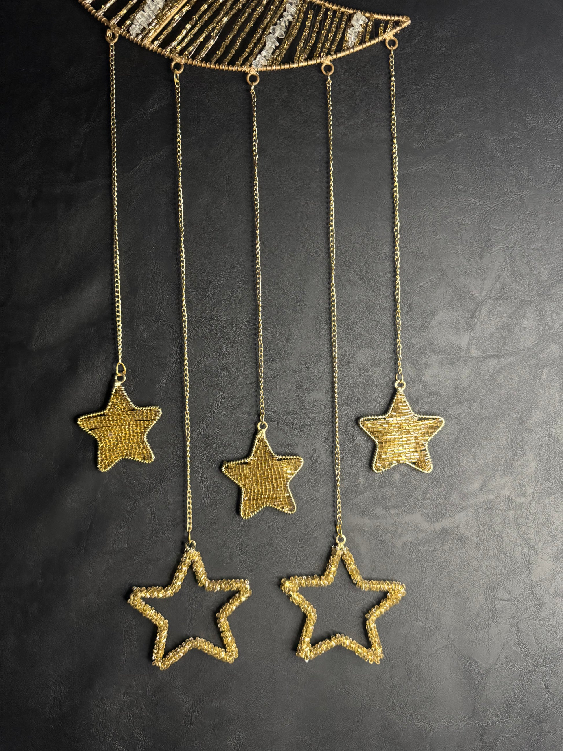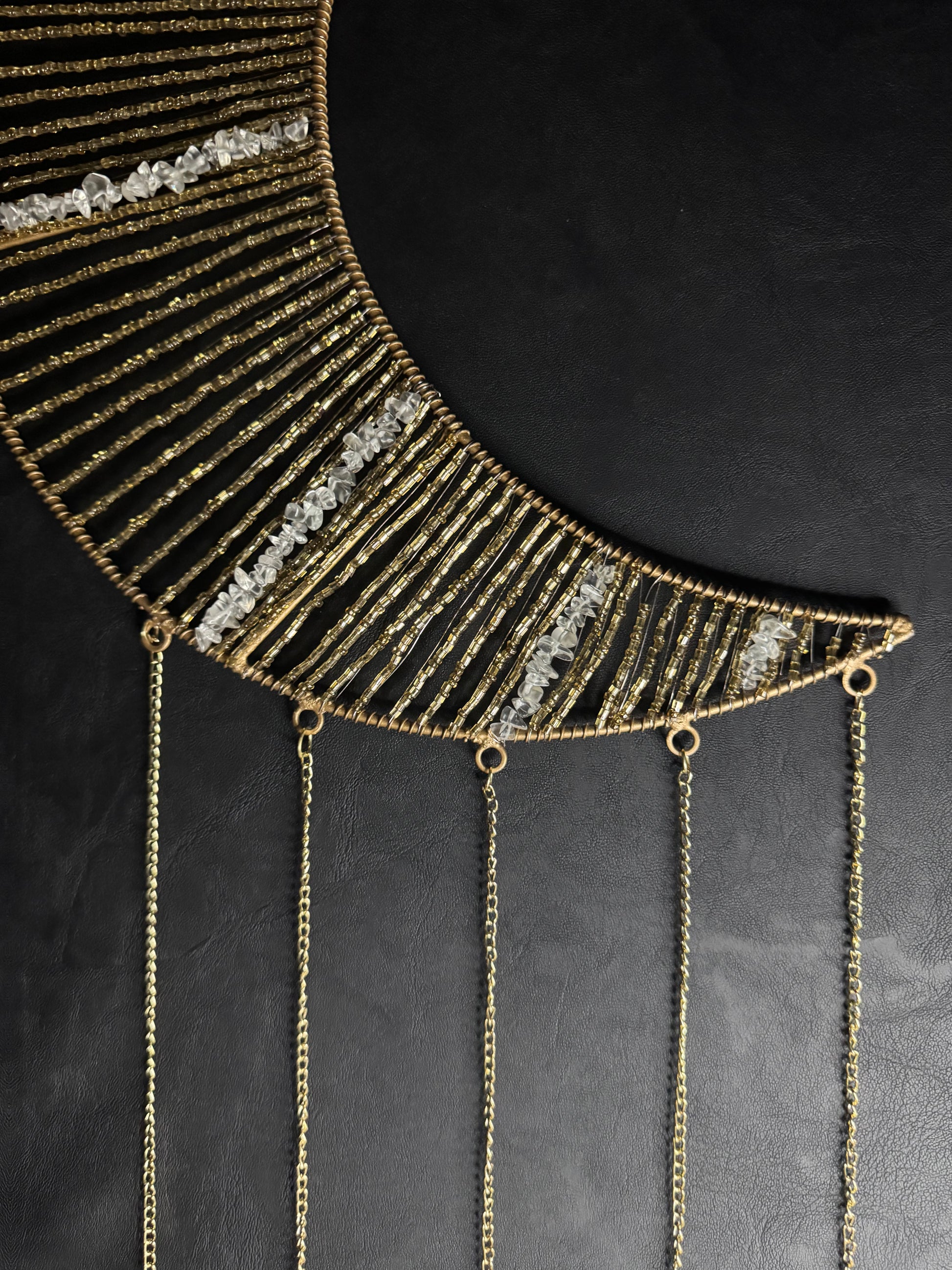 Vintage Sun Catcher featuring clear quartz like crystal and glimmering, gold glass beads