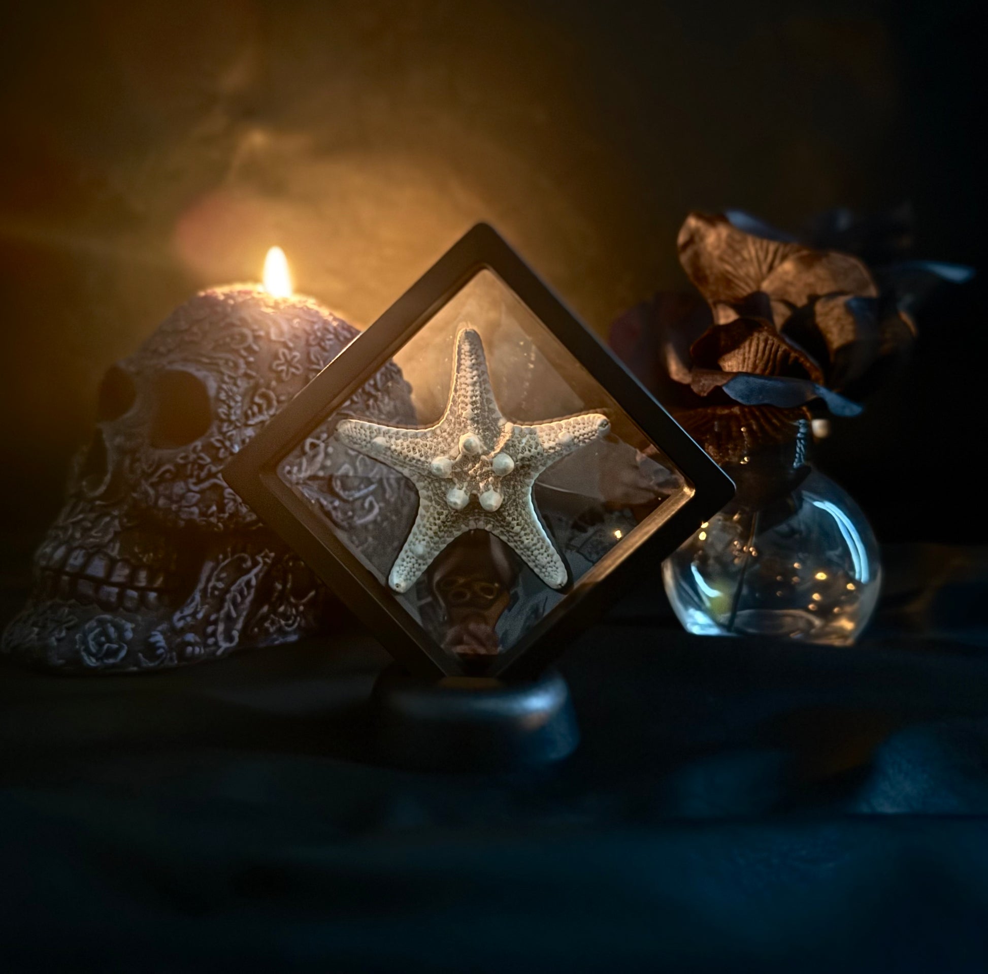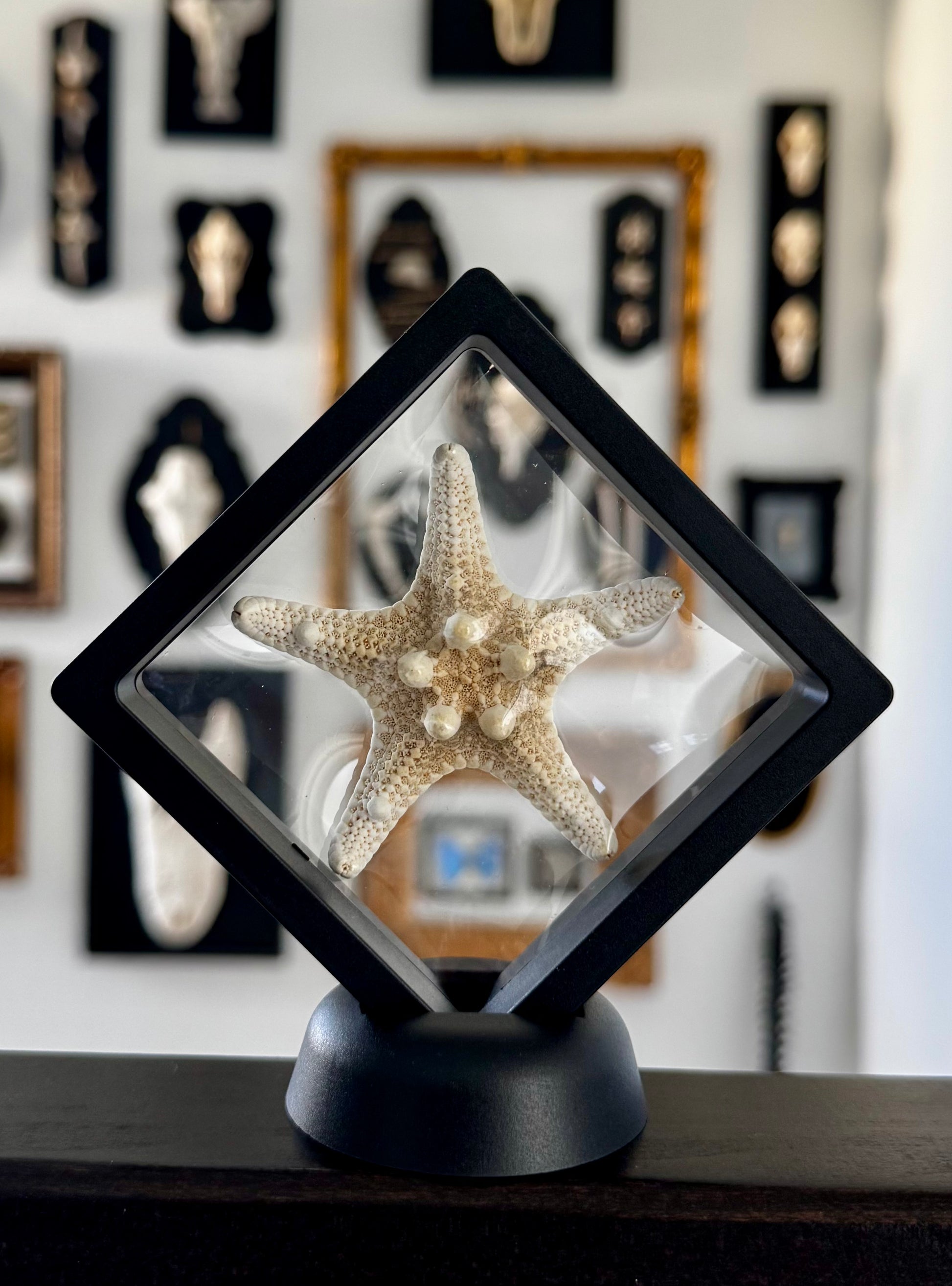Large Starfish from the coast of Florida in a 3.5in floating frame, stand included.